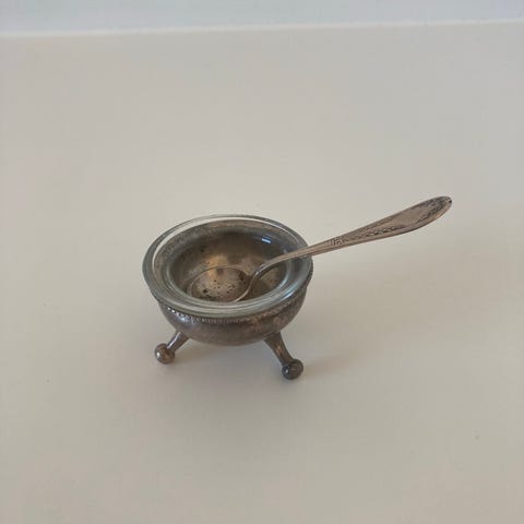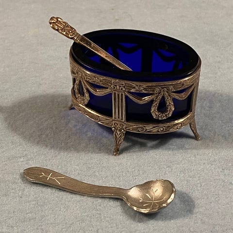 Ukendt mærke 2 stk. saltkar med skeer blå sølvfarvet