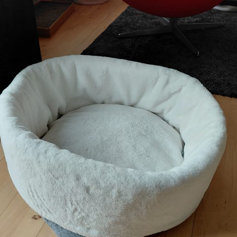 hundeseng / katteseng beige 43x43x13 cm. Er meget blød. Farven er lys beige. Billeder driller lidt.