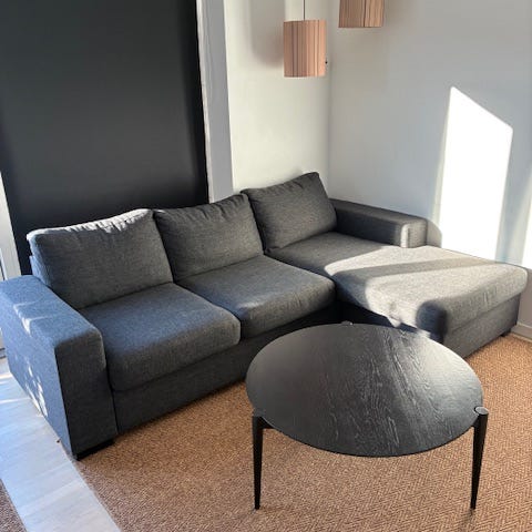 Chaiselong sofa med opbevaringsplads i chaiselong og ligeledes mulighed for at kunne slås ud som sovesofa. Sælges grundet flytning