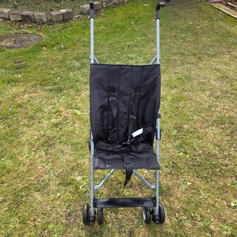 Retro klapvogn med brugsspor, men mange gode trilleture fortsat.