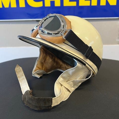 Vintage hjelm motorcykel sort brun læder