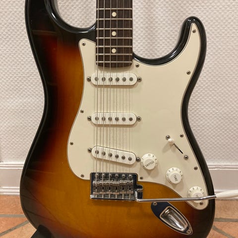 Fender Player Plus Stratocaster elektrisk guitar i rød finish (Fiesta Red). Modellen har klassisk Stratocaster-krop med tre single-coil pickupper, 5-vejs pickupvælger og standard tremolo-system. Hals og gribebræt er i træ med bolt-on konstruktion, og stemmeskruerne er lukkede mekanikker. Egnet til elguitarister, der søger en moderne Stratocaster-model med traditionelle kontroller og lydmuligheder.