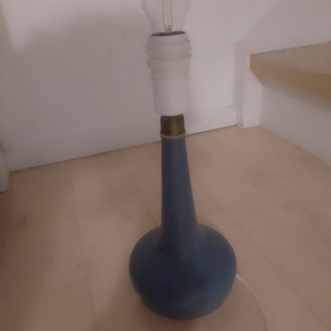Flot blå bordlampe fra Le Klint (311) i en blå nuance og med skærm også fra Le Klint. Den har enkelte steder fået et lille tryk - se foto.