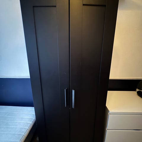 Vigtigt! I det ene skab (længst til venstre) er der savet et hul i bagpladen og et lille stykke af tophylden, fordi skabet har stået foran en eltavle. Prisen afspejler dette.