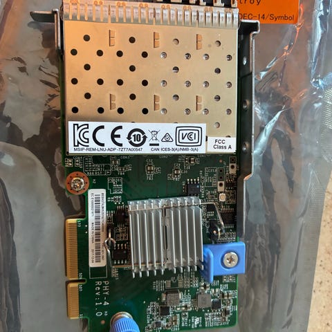 Sælger et Lenovo netværkskort med 2× SFP+ porte (til 10Gb fiber/DAC).