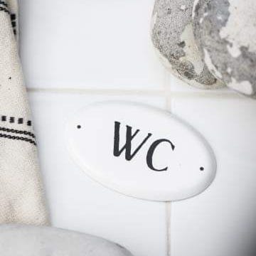 Toiletskilt / klistermærke med “Toilet”, Ca. 28 x 14 cm, Stort flot klistermærke/skilt med toilet. Nem at montere på døren til dit wc/badeværelse.