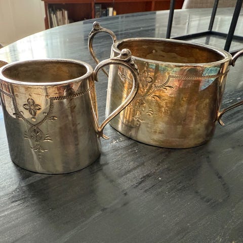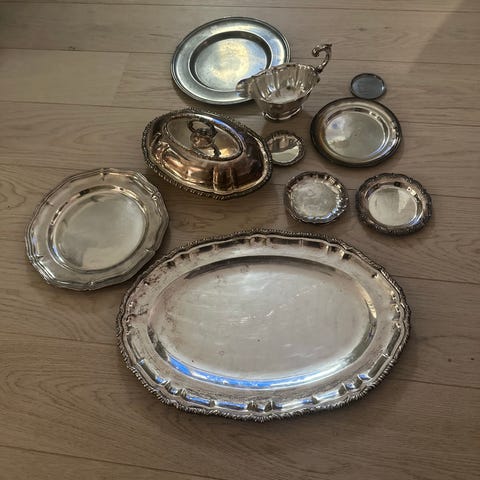 Sølvplet fad rundt perlekant