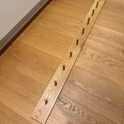 Sælger denne fine Space knagerække fra Hübsch i egetræsfiner. Den måler 30x12x20 cm og har tre knager samt en lille hylde til ekstra opbevaring. Perfekt til entré, soveværelse eller køkken.