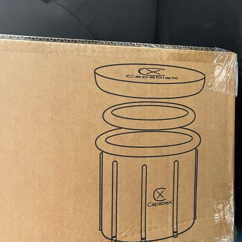 Nyt og indpakket isbad til koldtvandsterapi, købt via Coop. Velegnet til brug på terrasse, altan eller i have til isbade og koldtvandsterapi. Badekarret er fritstående og kan fyldes med koldt vand eller isvand efter behov. Konstruktionen giver mulighed for, at én person kan sidde nedsænket i vandet op til skulderhøjde. Egnet til restitution efter sport, wellness og generel kropsterapi. Kan tømmes og flyttes efter brug afhængigt af opsætning og underlag.