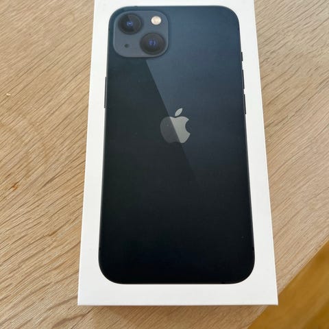 Apple iPhone 13 smartphone med 128 GB intern hukommelse. Modellen er i farven midnatsfarve. Leveres i original emballage med tilhørende opladningskabel, som vist på billederne. Velegnet til almindelig brug, streaming, apps og foto/video med iPhone 13-kameraet. Understøtter iOS og typiske Apple-tjenester som iCloud og App Store.