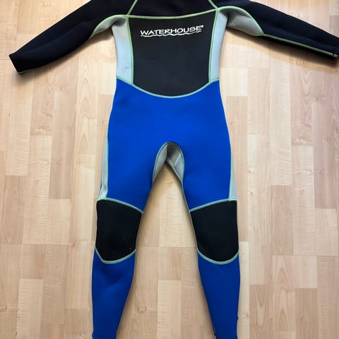 Waterhouse våddragt i neopren i sort med grønne detaljer i størrelse 12/13 år. Dragten er med lange ærmer og lange ben samt lynlås i ryggen. Forstærkede knæpartier giver ekstra slidstyrke. Velegnet til vandaktiviteter som strand, surfing og andre vandsportsaktiviteter for børn i alderen ca. 12-13 år.