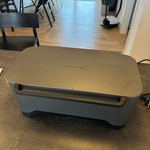 Im selling this home grill machine with a thermometer, used once but too big for our kitchen. Many options for cooking, it opens up to flat so both grills are laying down. Super advanced and comfortable!!