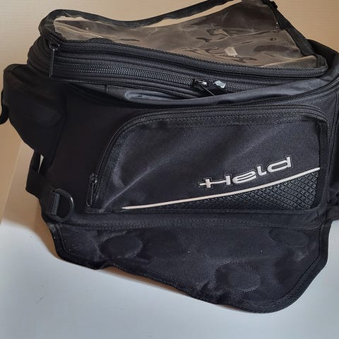 BMW Motorrad tanktaske i sort. Tasken er designet til montering på motorcyklens tank og har et gennemsigtigt topcover, der gør det muligt at se f.eks. kort eller elektroniske enheder. Indvendigt har tasken foring med elastisk kant og flere fastgørelsespunkter. Ydermateriale og for er primært polyester og nylon ifølge mærkesedlen. Tasken lukkes med lynlås og har remme til fastgørelse på motorcyklen. Velegnet til opbevaring af mindre personlige ejendele under kørsel.