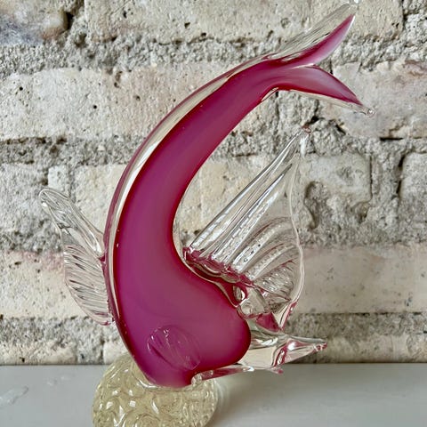 Murano glas fisk figur i klart og koboltblåt glas. Ingen skår