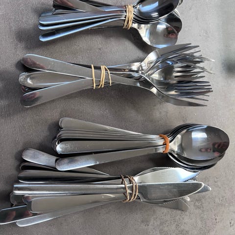 Messingfarvet bestik fra IKEA (serien TILLAGD). Rigtig fin stand. Materialet er rustfrit stål. 12 stk. af alle dele (undtagen gafler, hvor der er 11 stk.)
