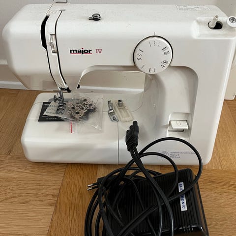 Major Fancy symaskine i hvid. Mekanisk model med forskellige sømprogrammer, justerbar stinglængde og -bredde samt mulighed for zigzagsøm. Maskinen har bærehåndtag og medfølgende fodpedal. Der medfølger også hardcase-kuffert og brugsanvisning. Velegnet til almindelige syopgaver i hjemmet, som f.eks. reparationer, oplægning og simple syprojekter.