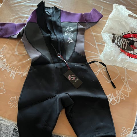 G-Force våddragt i fuld længde med lange ærmer. Dragten er i størrelse M, egnet til en højde på ca. 172-177 cm og et brystmål på ca. 97-102 cm. Materialet består af 80 % neopren og 20 % nylon med Superstretch-paneler for bedre bevægelsesfrihed. Farvekombination i sort, grå og blå. Lynlås i ryggen. Velegnet til vandsport som f.eks. surfing, dykning eller andre aktiviteter i koldt vand.