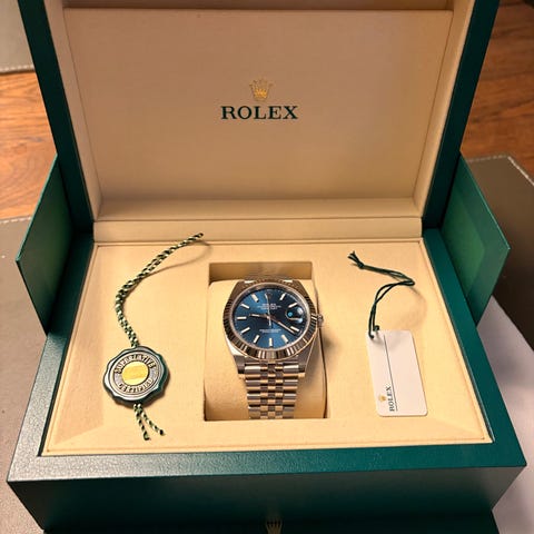 GENOPSLAG - sælger mit flotte rolex datejust 41mm købt i hos Klarlund juli 2024. Få hairlines på låsen.