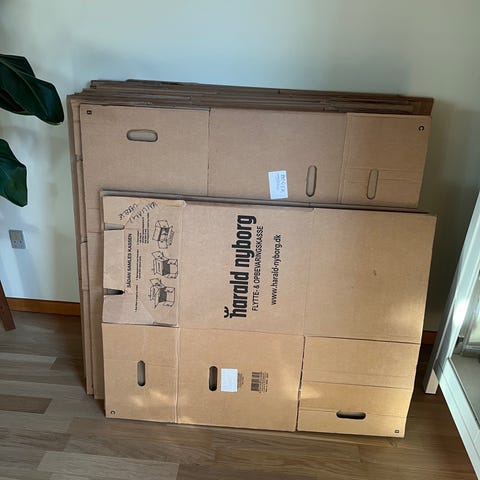 8 flyttekasser gives væk. I fin stand men brugt til et par flytninger :)