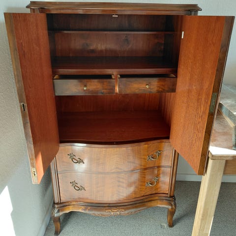 Gammel velholdt dækketøjsskab i mørkt træ, fra mormor hjem sælges, og de er ikke nemme at finde så velholdt.
