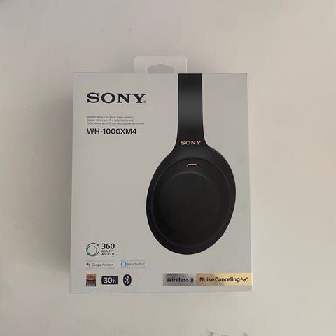 “Sony WH-1000XM4 over-ear høretelefoner i hvid. Trådløse lukkede hovedtelefoner med polstrede ørepuder og justerbar hovedbøjle. Modellen har indbyggede knapper på siden til styring af lyd og funktioner. Ørekopperne kan drejes og klappes sammen for nem opbevaring, og der medfølger et hårdt etui til transport og beskyttelse. Velegnet til brug med mobil, computer og andre enheder med trådløs lydforbindelse.”
