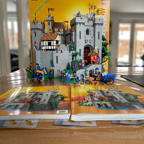 LEGO Løveriddernes Borg: stort Castle sæt, udgået af handlen. Samlet én gang og herefter skilt ad og pakket ned. Jeg har ikke talt klodserne herefter, så sælges derfor som 99.9% komplet. Skulle der mod forventning mangle en klods eller to kigger jeg selvfølgelig mine restklodser igennem, så de kan komme med.