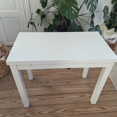Pænt og velholdt bord med udtræksplade, som er gemt under bordpladen.