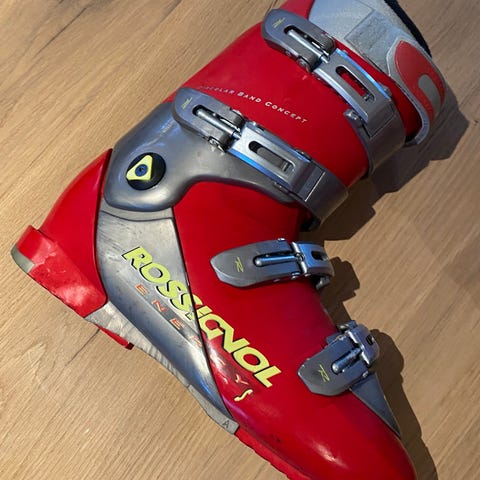 Italienske Rossignol skistøvler - str 295 mm svarende til sko str 43/44. Solidt spændesystem og god pasform. Der medfølger en praktisk rejsetaske som vist.