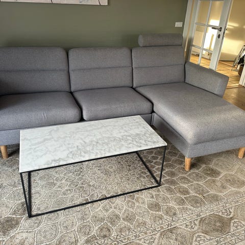 Sofa med chaiselong grå tekstil