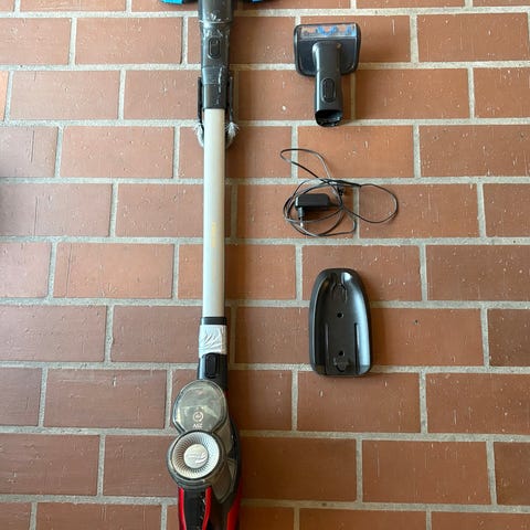 Philips støvsuger i rød farve. Lille model -en traditionel gulvstøvsuger med teleskoprør, slange og standard mundstykke til gulve inkl 1 støvsugerpose. Velegnet til almindelig rengøring af hårde gulve og tæpper i hjemmet. Det ene hjul driller ved at falde af. Jeg tror, det skal have en gang lim. Men den er meget handy og let at håndtere.