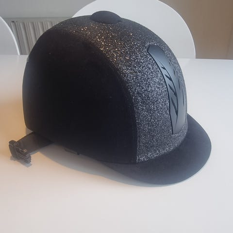 Rigtig fin hjelm fra Horze. Med glimmer. Brugt men I god stand. 75 kr plus evt porto