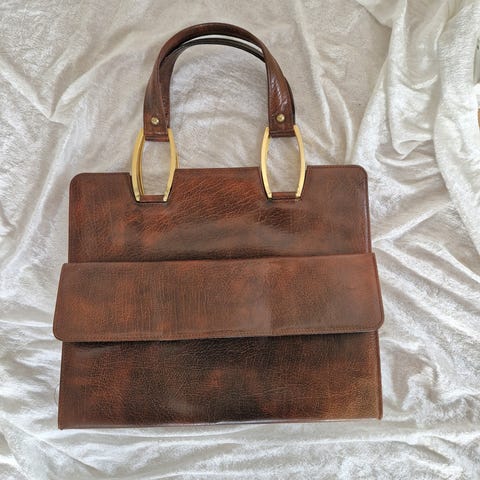 Elegant vintage Bon Goût håndtaske i læder - marineblå.