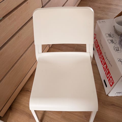 2 stole ( hvide ) brugt som reserve gæstestole gives væk pga flytning .