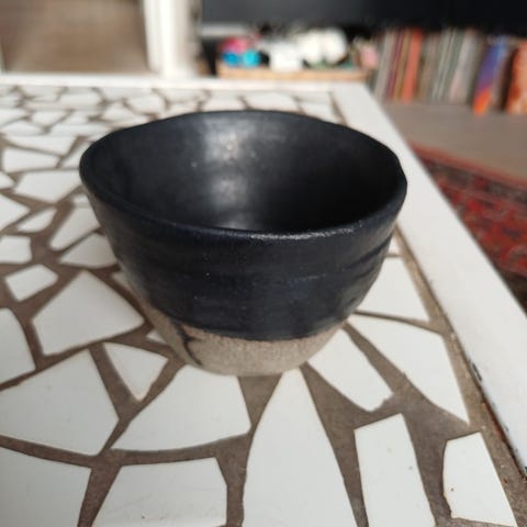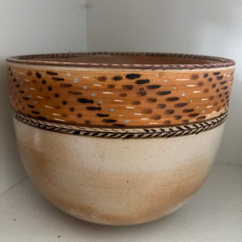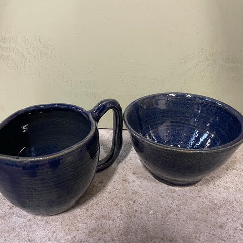 Keramik kande/skål med hældetud blå/Gutte Eriksen