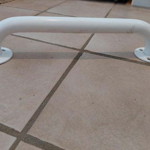 Støttegrab til bag og toilet. Håndtag i forkromet stål dimension målt fra midt til midt L 250 mm h 75 mm. Der medfølger skruer .