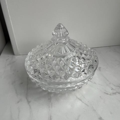 Glas, bonbonniere/glasskrin, fint glasskrin med slibninger og låg