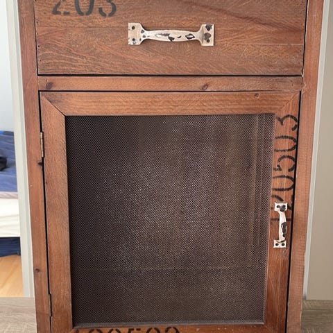 Lille skab, mål er på et billede. Sendes hvis modtager ønsker det og betaler fragt