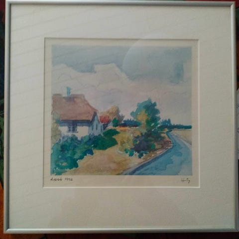 Akvarel tegning trykt på lærred med motiv fra Lønstrup