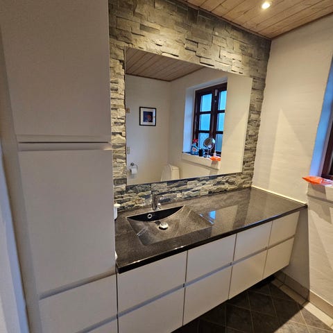 Pænt badeværelses bord/skab i marmor vask og bordplade m underskabe ,plus overskabe underskab 130 L højde 60 og dybde 55 overskabe højde 70 brede 30 dybde 20 er pænt og velholdt spejl kan gå med pris ide 500kr