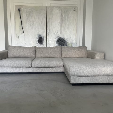 Betræk Soil glatvævning green. Fyld med dun fyld og ben i olieret eg. Købt i i 2021, ny pris 31.469. Sofaen har stået i ikke ryger hjem og er i rigtig god stand, sælges grundet flytning. Betrækket er aftageligt og vaskbart. Grundet belysningen i stuen fremstår sofaen mere grålig på billeder end i virkeligheden.