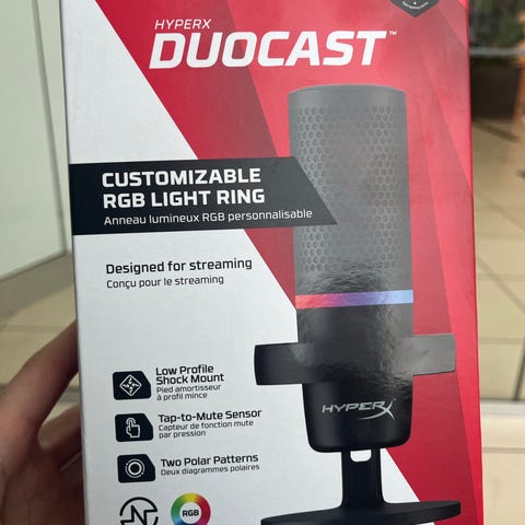 Sælger en helt ny og uåbnet HyperX DuoCast USB-mikrofon. Perfekt til streaming, gaming og podcast med klar lyd, RGB-lysring, tap-to-mute funktion og støddæmpende shock mount. Nem plug-and-play til PC, PS5/PS4 og Mac.