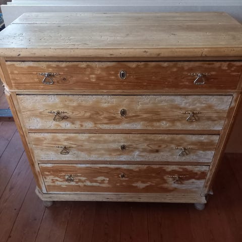Fed fyrretræs kommode fra 80'erne/90'erne. Fin brugt stand og holder mange år endnu.