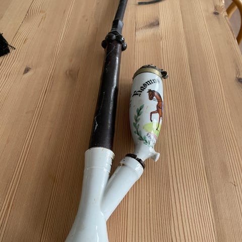 7 stk..Ukendt mærke piber sæt i brun træ. Sættet består af flere klassiske tobakspiber i forskellige former og længder. Piberne er udført i træ med mørke mundstykker. Egner sig til samlere eller til brug som tobakspiber. Ingen specifik modelbetegnelse eller størrelse angivet. Og en Marmor pibeholder samlet pris 600 kr. Pr.stk 100 kr