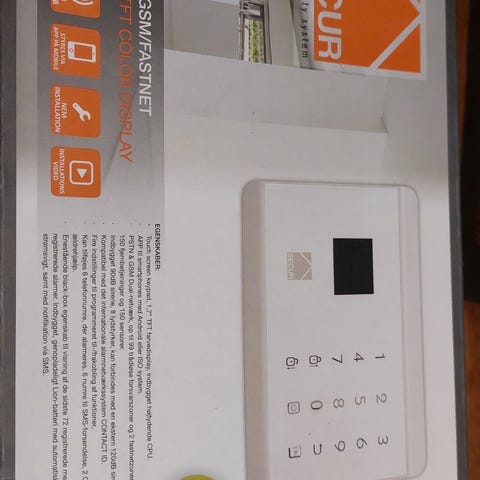 Sikkerthjem smart home alarmsystem sæt med central enhed, kamera, betjeningspanel med touch-knapper, bevægelsessensor, dør-/vindueskontakt og diverse monteringsdele. Sættet omfatter også netværks-/forbindelseskabel, tre nøglebrikker samt trykt quick setup guide til installation. Systemet er egnet til overvågning og basis sikring af bolig eller mindre erhvervslokaler, hvor der ønskes registrering af bevægelse og åbning/lukning af døre eller vinduer. Stort set ubrugt. Der er for over 2.000,-