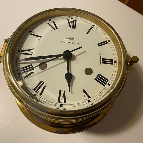 Flot Shatz Royal Mariner skibsur i messing, batteridrevet.