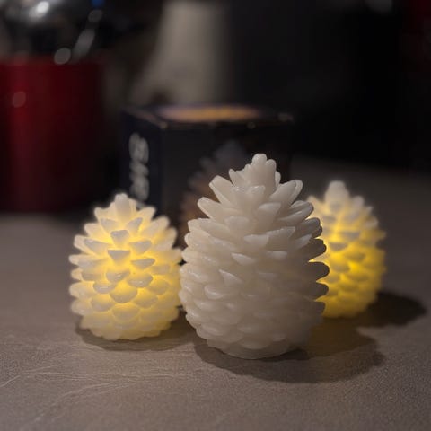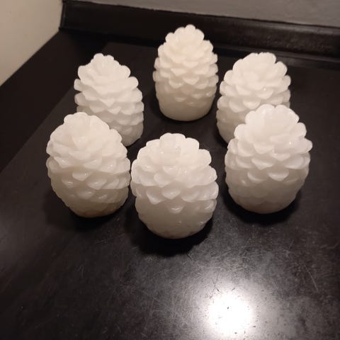 8 stk led lys - Clara Cone/kogle - 7 cm høje. Kan bruges i mange pyntesammenhæge. Sælges samlet.