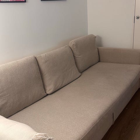 Sovesofa i beige farve stof