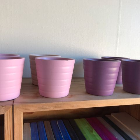 Porcelæn, Miniurtepotter, 8 stk miniurtepotter i gråt porcelæn og 3 i sort og 3 i rød og en lille zinkbalje til 3 små potter sælges. Potterne måler 6 cm i højden og har en diameter på 7 cm. Kan afhentes mod kontant eller Mobile Pay
