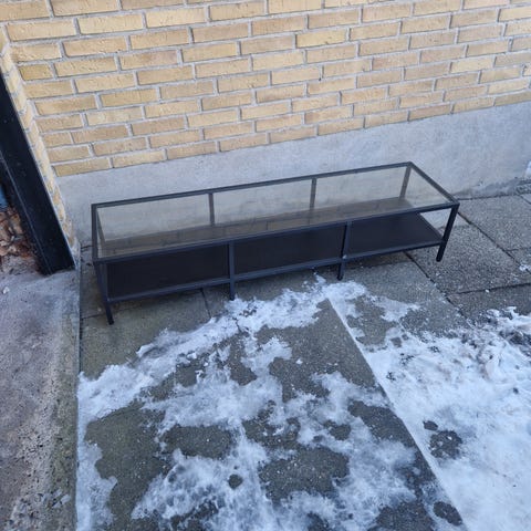 Bordet består af tre niveauer af tykt, sort hærdet glas, som understøttes af robuste ben