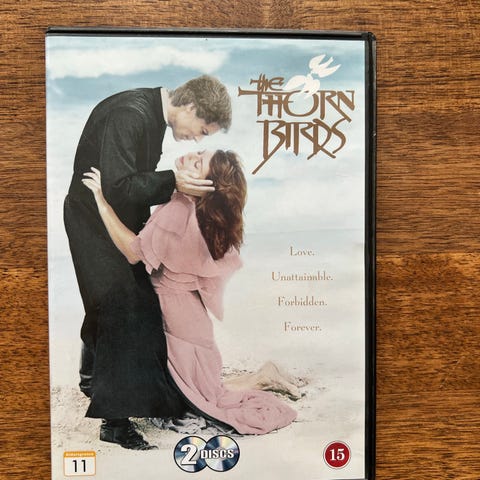The Thorn Birds / Tornfuglene dvd sæt med to udgivelser af miniserien. Sættet indeholder den danske udgave “Tornfuglene” samt den engelsksprogede udgave “The Thorn Birds – The Missing Years”. Begge film er i dvd-format med omslag og trykt information på for- og bagside. Velegnet til afspilning på dvd-afspillere, der understøtter de angivne region- og aldersmærkninger på omslagene.